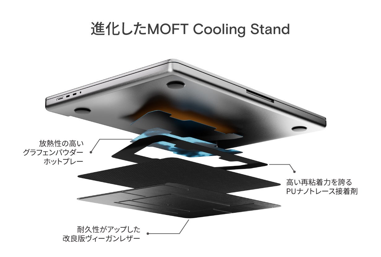 シリーズ誕生から3周年を迎えるMOFTは、これまでに多くのユーザーから頂く声を参考にMOFT ノートPCスタンドの全面リニューアルを実施。今回のリニューアルによるMOFT Cooling Standの特徴は3つあります。