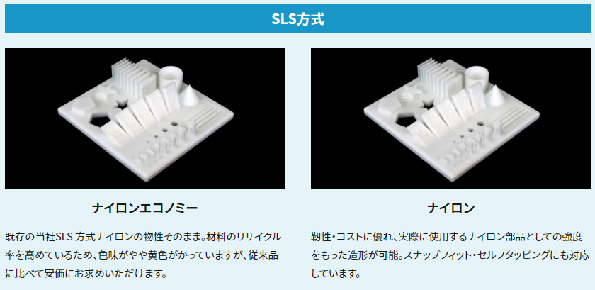 DMM.make 3Dプリントでは、今回新たに追加したガラス入りナイロン以外にも、多数のナイロン素材を取り揃えています。
