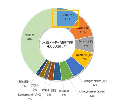 ※1、Itron社の水道スマートメーターの世界シェアについて
