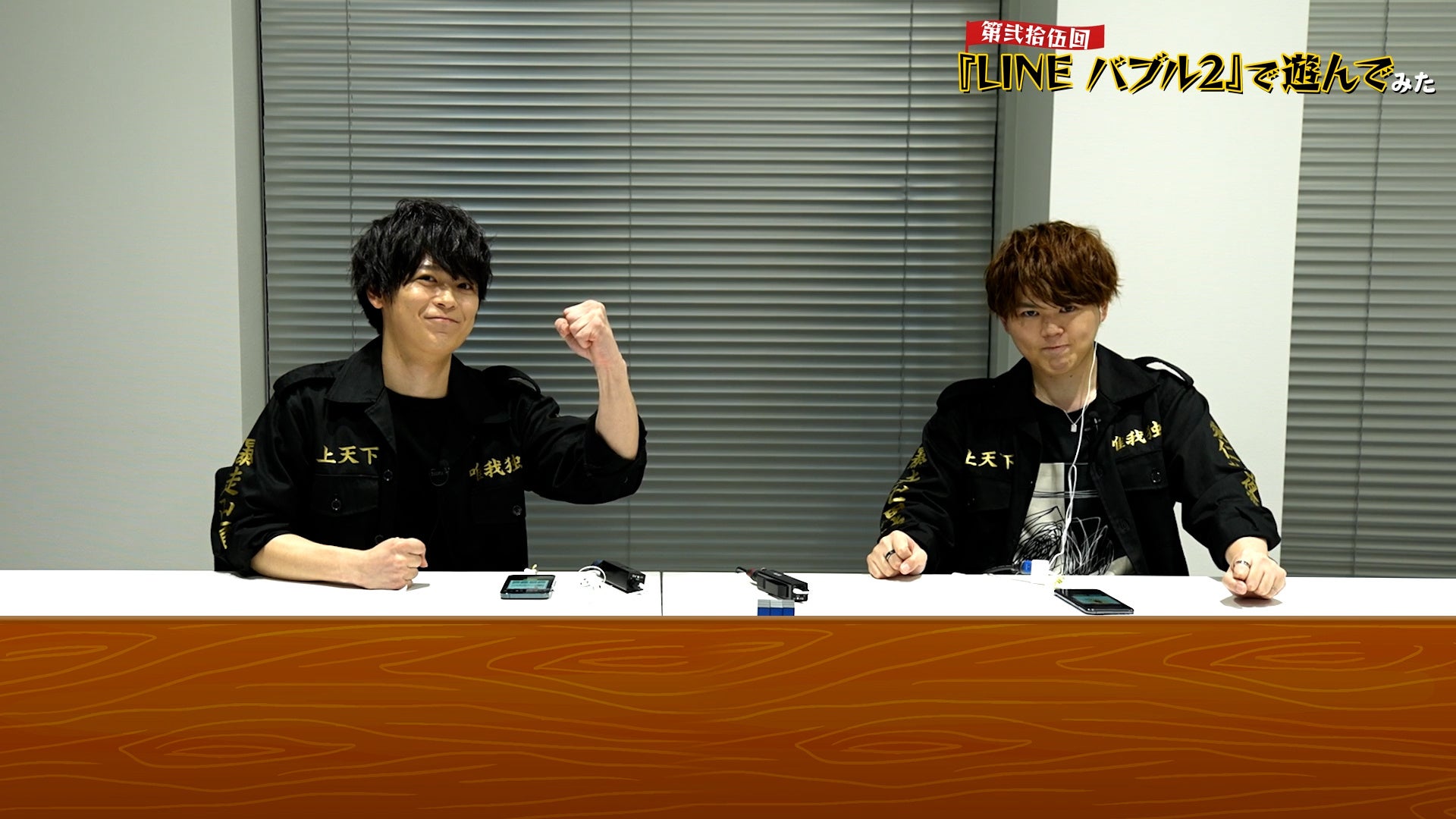 「遊誅舞」は、花垣武道役の新祐樹さんが“泣き虫ヒーロー”の名に恥じない、体当たりの企画をお届けする人気企画です。今回、初登場ゲストとして羽宮一虎役の土岐隼一さんが登場し、新祐樹さんと「LINE バブル2」の難易度の異なる3つのステージに挑戦します。新祐樹さんと土岐隼一さんがプレイする「LINE バブル2」は、同じ色のバブルを3つ以上揃えてステージ内に登場するさまざまなギミックをクリアし、バブルを消していく爽快感が心地よいシューティングパズルゲームです。挑戦するステージの難易度が上がるにつれて息の合ったプレイを見せる2人ですが、最後に彼らを待ち受けていたのは…?!