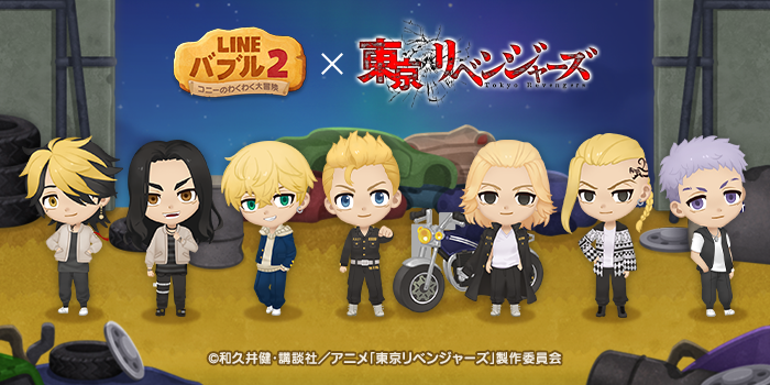 9月6日(火)より、「LINE バブル2」と『東京リベンジャーズ』のコラボを開催中です。期間中、花垣 武道、佐野 万次郎、龍宮寺 堅、三ツ谷 隆などの人気キャラクターたちがゲーム内のプレミアムガチャや各種イベントに登場します。ミッションクリアでLINEスタンプも無料配布中です。詳しくはゲーム内のお知らせをご確認ください。
