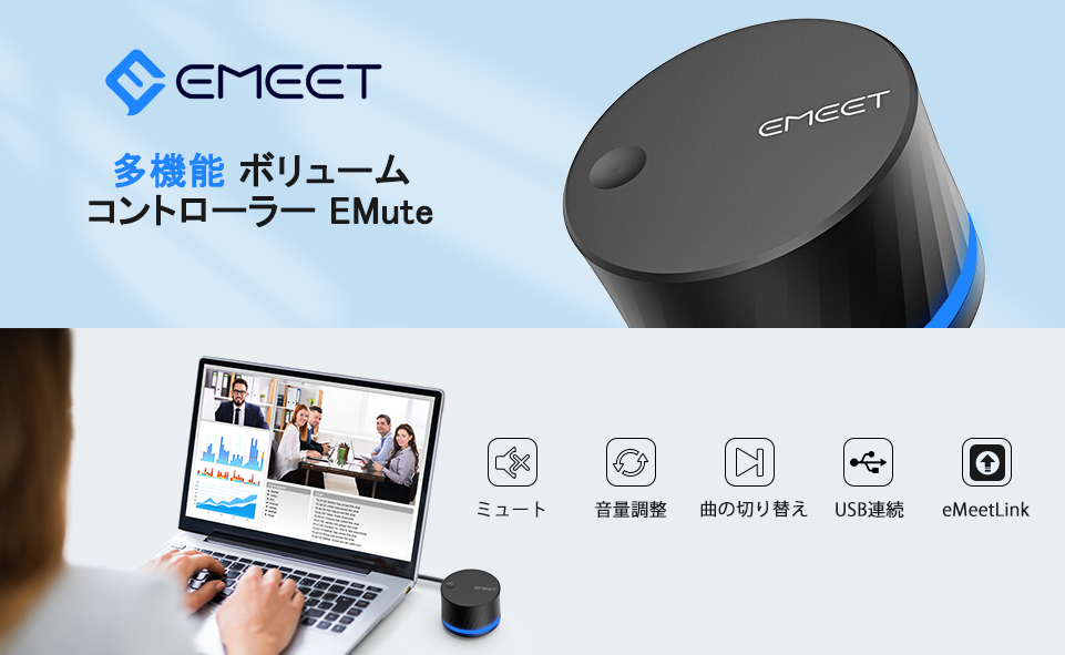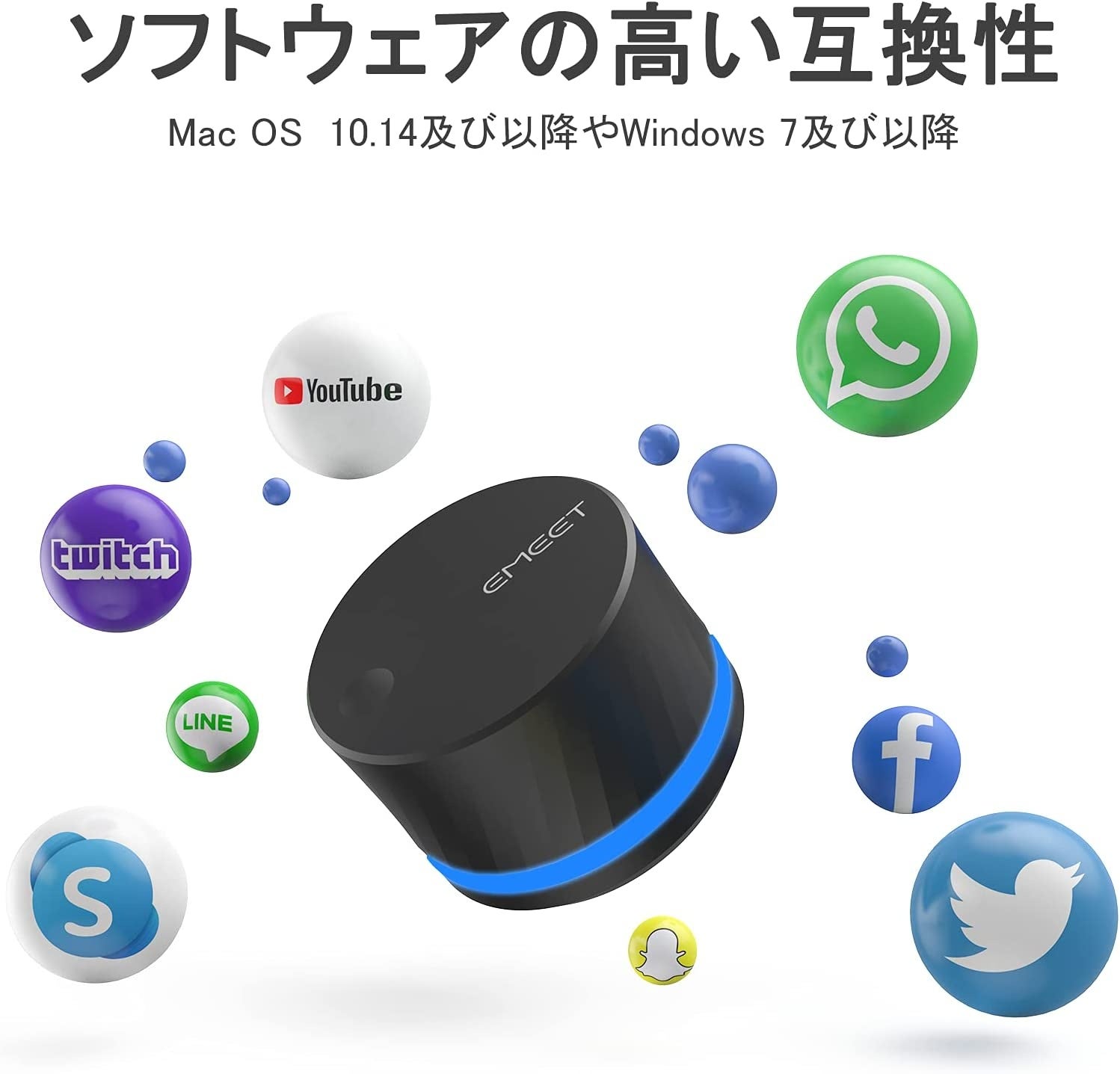 USBボリュームコントローラーはmacOS10.14、windows7及び以降のPCをサポートでき、Skype、Line、FaceTime、Youtubeなどのさまざまなアプリケーションやソフトウェアとも互換できる。 EMEET社のウェブカメラC960などと一緒に使用することをおすすめいたす。(注:eMuteを使用する時に、eMeetLinkソフトウェアを起動ことが必要です。)