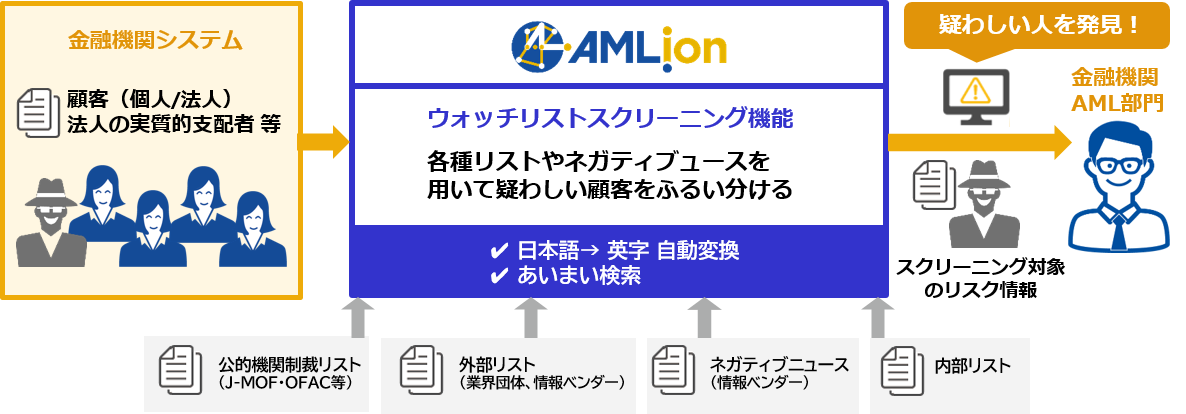 【AMLionのウォッチリストスクリーニング機能(WLS)の概要】