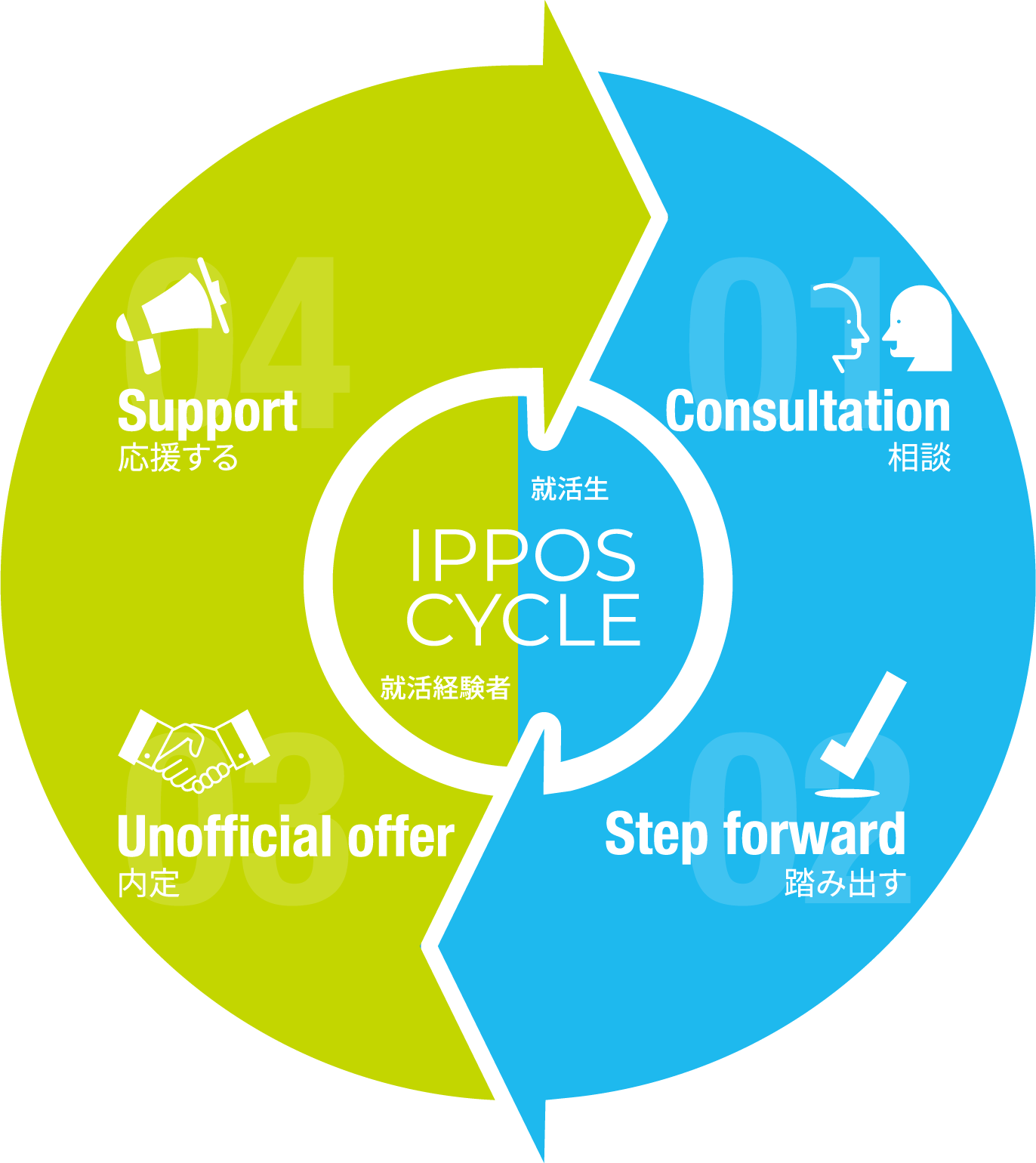 その結果、就活生が自信をもって納得内定を獲得し、今度は内定者という立場で次年度の就活生にアドバイスをする…そんな社会が実現できれば、「持続性ある就職活動の実現」によって就活はもっとオープンで安心できるものになると考えています。