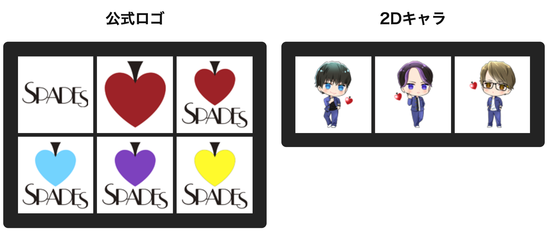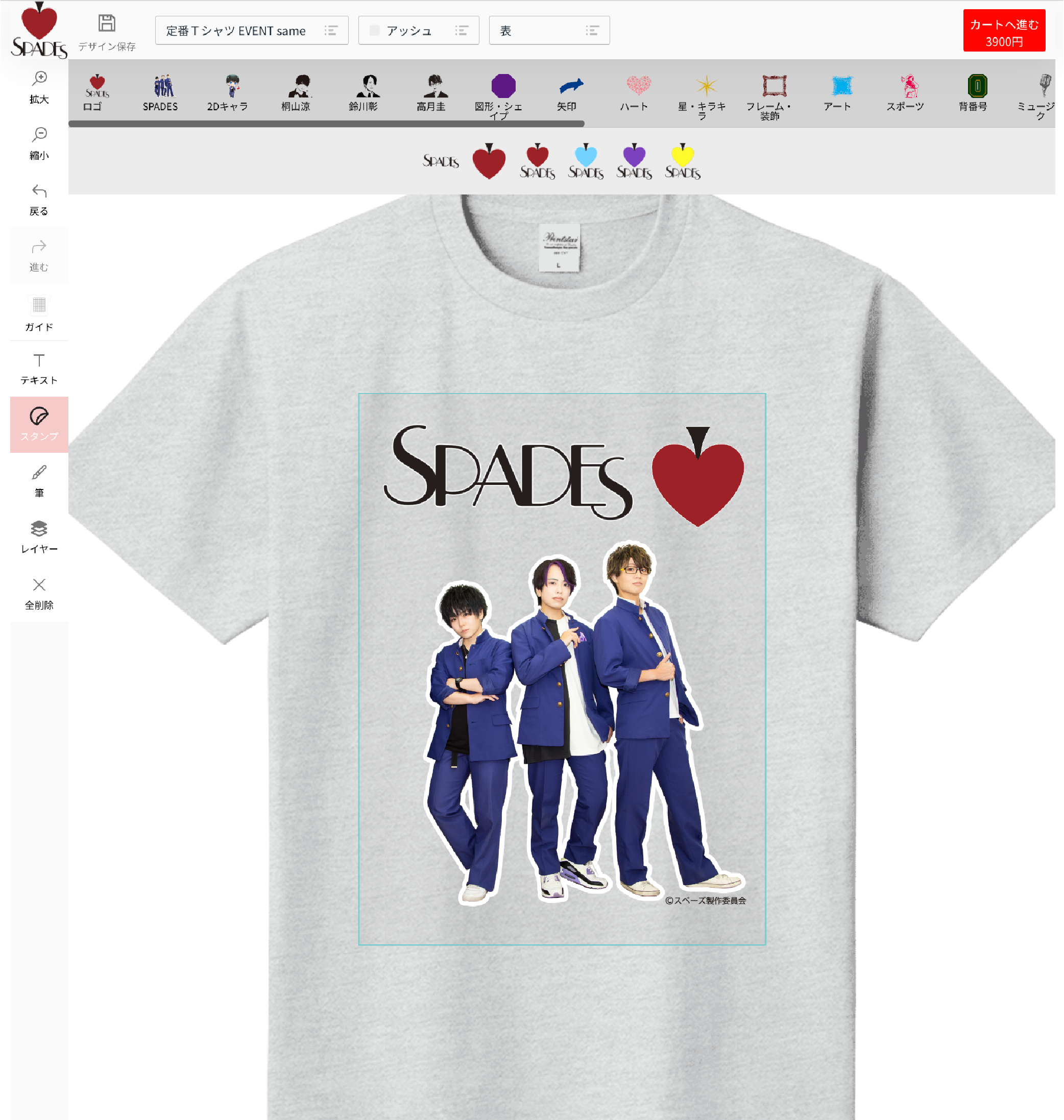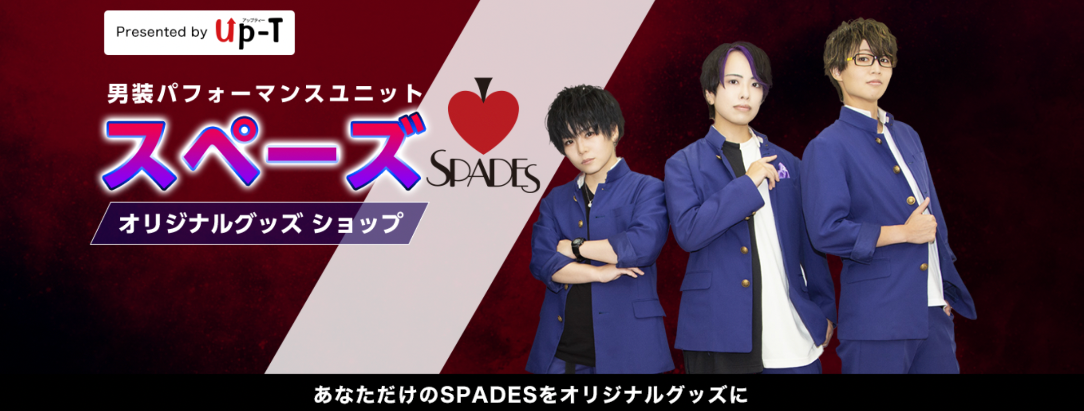 男装パフォーマンスユニットSPADES(スペーズ)とUp-Tのコラボレーション企画がスタート!メンバーがこの企画のために作成したデザイン等のスタンプを使ってあなただけのオリジナルグッズが作れます。スタンプには待望のフォトグラフや可愛い2Dなどご用意しておりますのでこの機会にグッズを作成してメンバーを応援しよう!