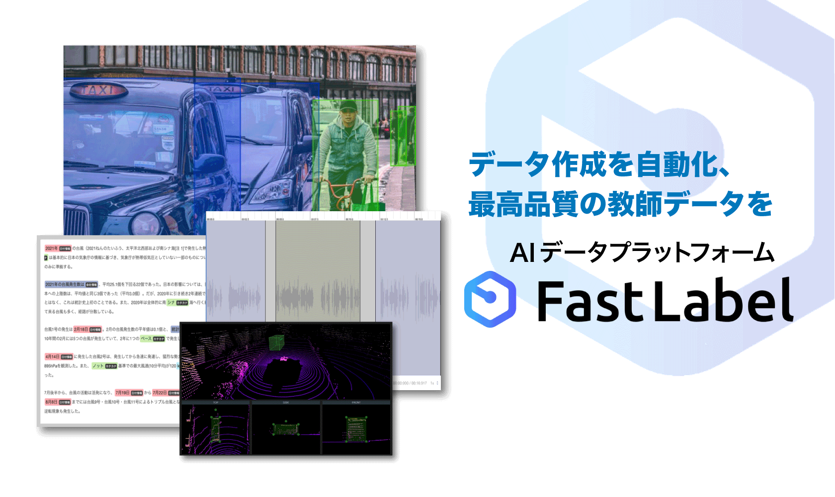 「AI開発を10倍速くする」をミッションに掲げ、アノテーションツール、教師データ作成代行、MLOps構築を包括したAIデータプラットフォーム『FastLabel』を開発・提供しています。教師データの作成と改善を高速かつ正確に行うためのアノテーションツールと、高度人材によるきめ細かいアノテーションサービスにより、高品質な教師データを素早く提供できることが特徴です。