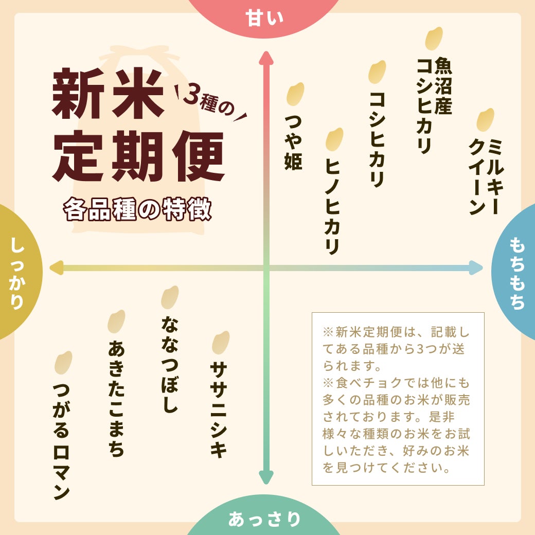 ◎【新米を3回お届け】「おまけ付きで少量お届け!幅広いタイプを試せる定期便」