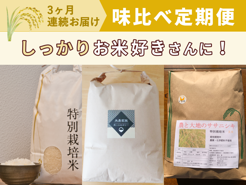 毎月1回・合計3種類の新米が白米で届く定期便です。