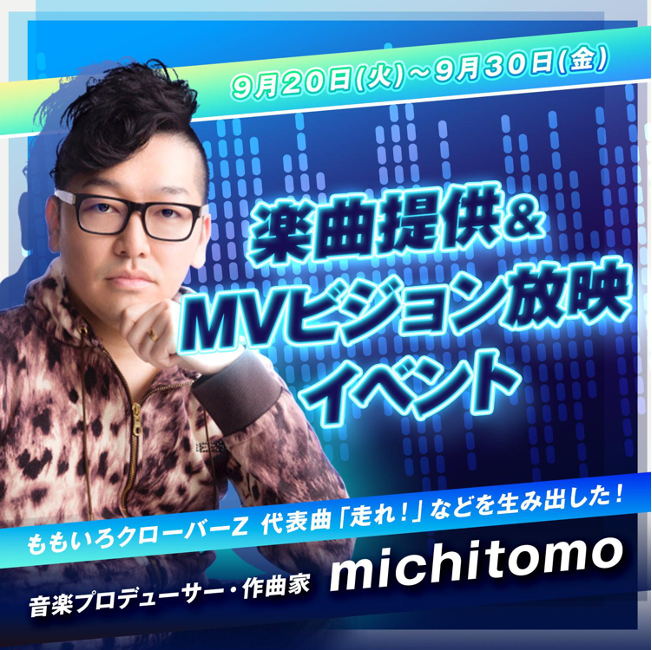 ももいろクローバーZの代表曲「走れ」などを生み出した音楽プロデューサー・作曲家のmichitomoによる楽曲提供オーディションを開催します。