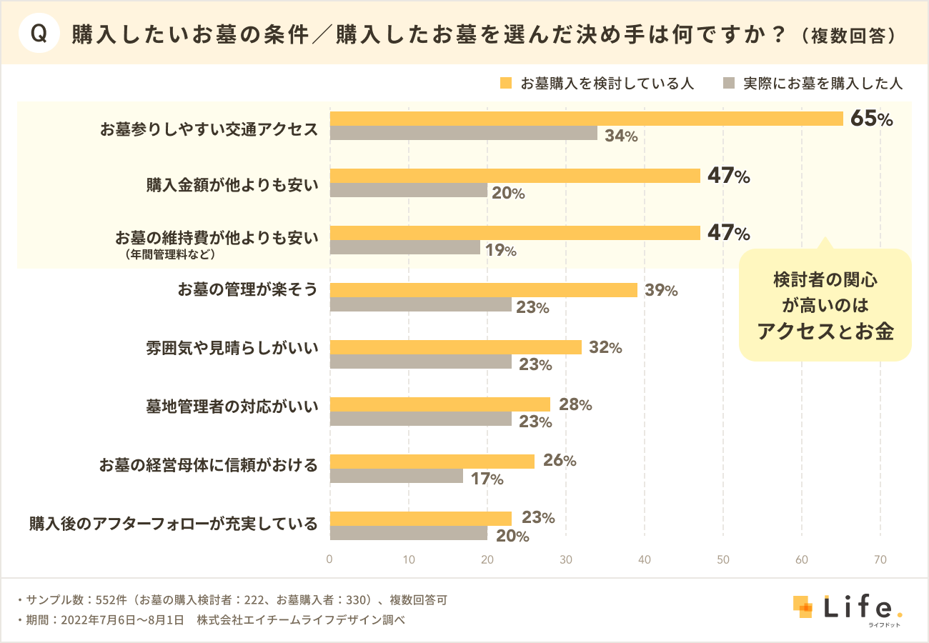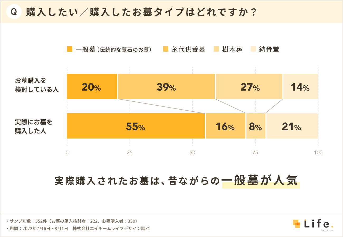 有効回答数:計552(①お墓の購入検討者:222、②お墓購入者:330)