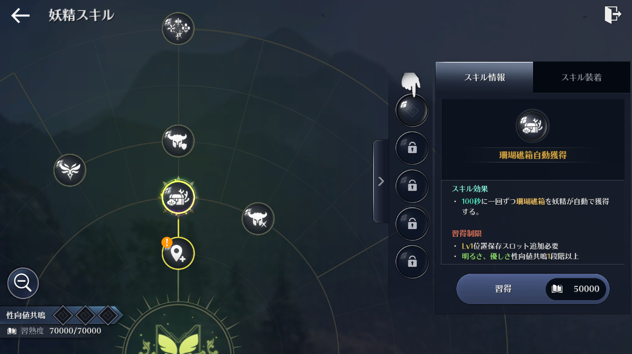 また、妖精を育成する事で攻撃力や防御力の上昇だけではなく、妖精の特別なスキルを獲得する事ができます。