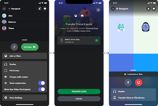 ”Xboxで参加”のタブを押して転送プロセスを開始すると、Xbox アプリが自動的に起動してDiscordボイスチャンネルとあなたのXboxの接続準備が整ったことをお知らせします。最後に、Xbox アプリ上で接続を承認すれば転送完了です。お好みのヘッドセットをXboxに繋いで、自由にボイスチャットをお楽しみいただけます。
