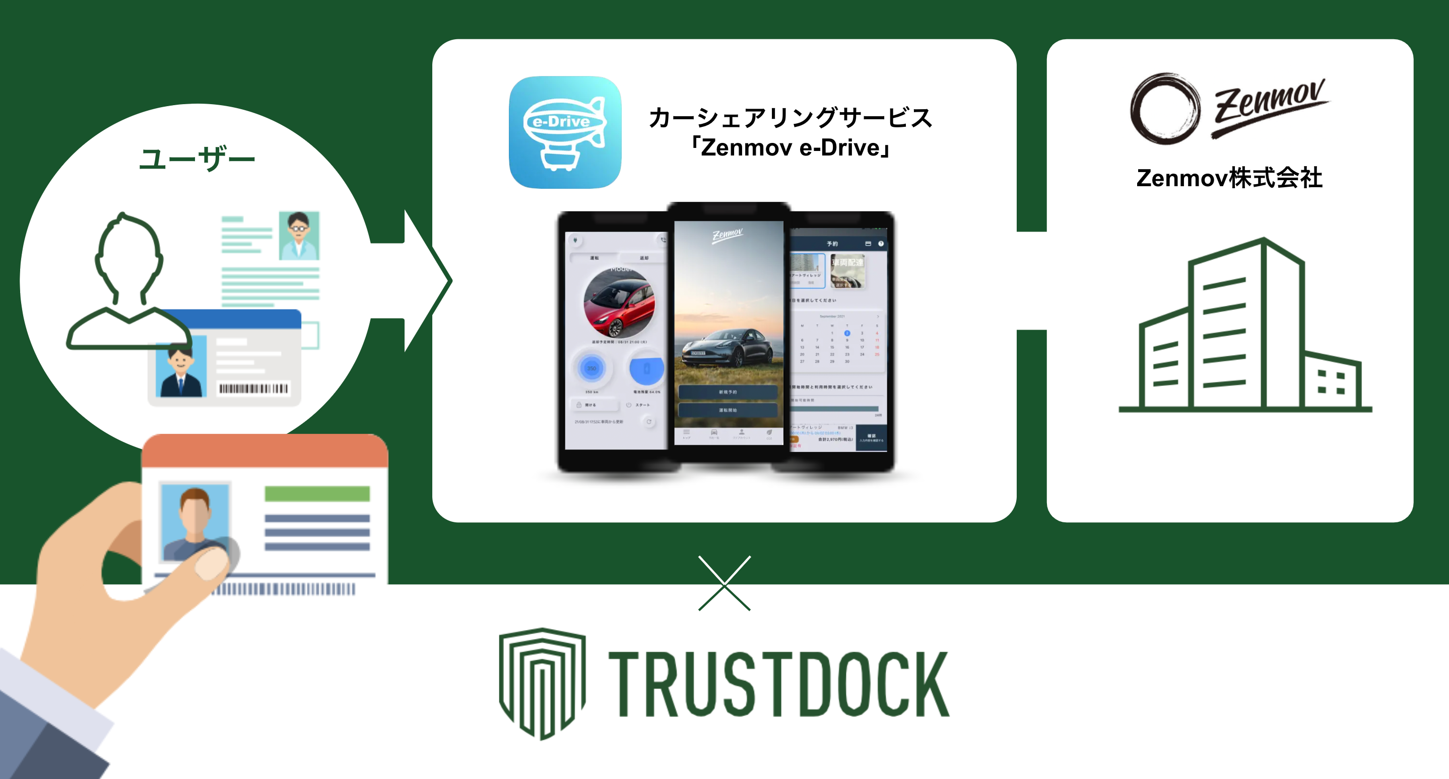 Zenmovは、TRUSTDOCKが提供するeKYC/本人確認APIサービスにより、「Zenmov e-Drive」の本人確認業務をスムーズに行なうことが可能となります。
