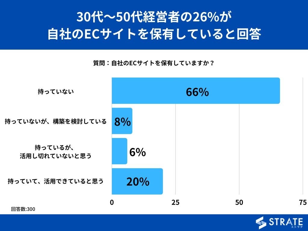30代~50代の男女を対象とした「自社のECサイトを保有していますか?」というアンケートで最も多かった回答は「持っていない」で66%でした。