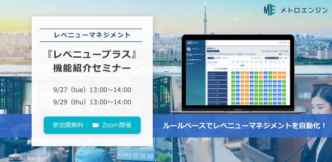 表 題:ルールベースでレベニューマネジメントを自動化!『レベニュープラス』機能紹介セミナー