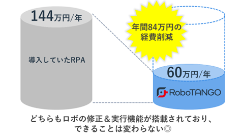 『RoboTANGO』へ乗り換えたことで、年間84万円もの経費を削減できました。この経費の削減分を新規事業や広告宣伝の予算に充当。資金を有効に活用しながら、従来のRPAツールと同様の機能性と利便性で、業務効率を高めることができそうです。