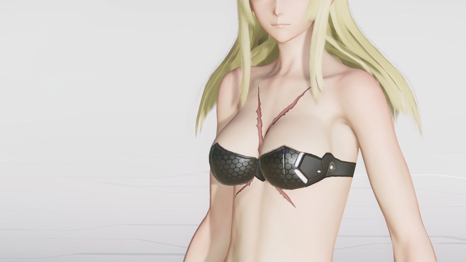 胸に大きなバッテンの傷跡がついているボディペイント。