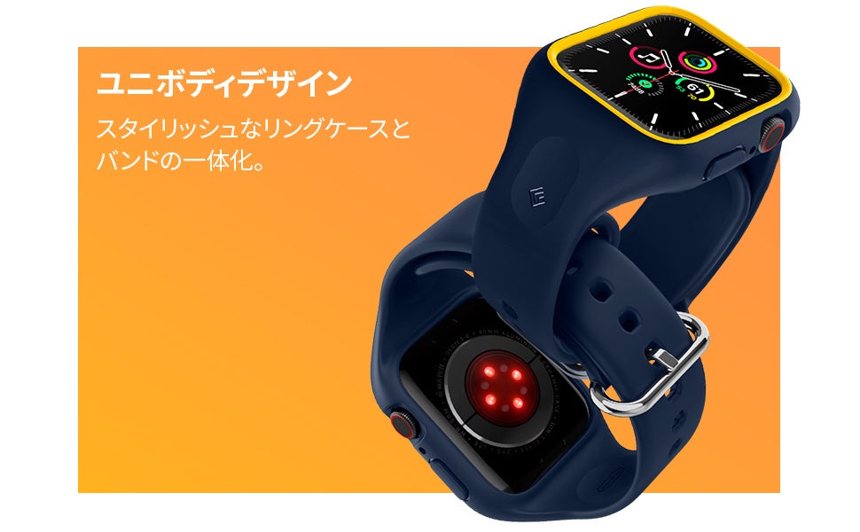 バンドとケースが繋がった一体型ケースです。柔軟な質感、高い耐久性、そして安定的なグリップを楽しめます。 ケースを付けたままでもウォッチの充電に干渉しません。