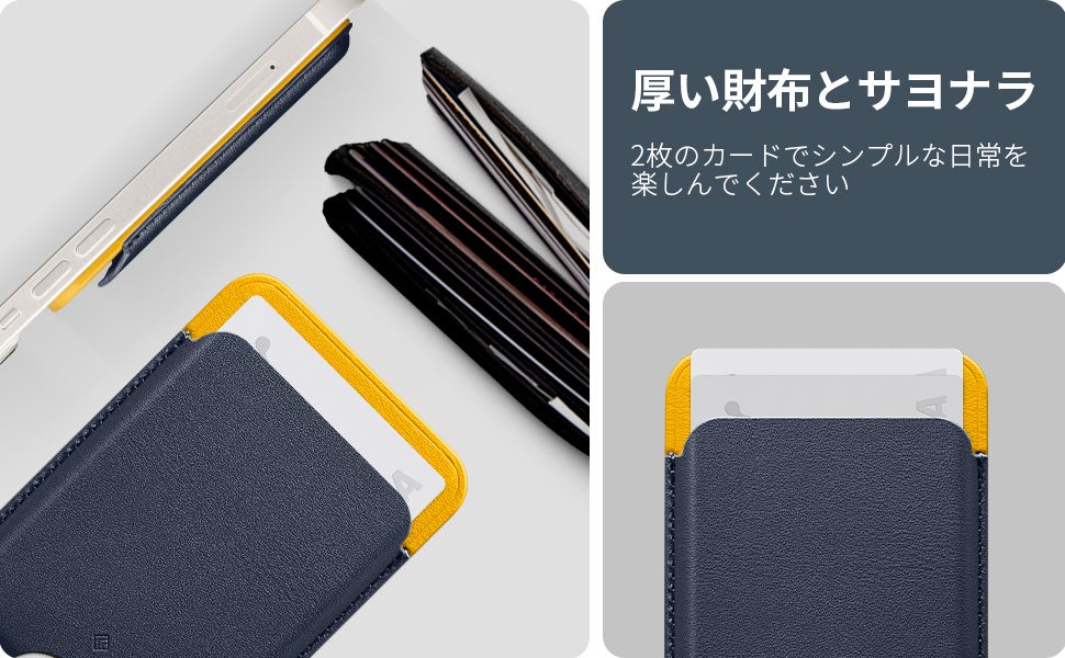 ビーガンレザー素材を使用し、ビビッドなカラーに合わせたオーダーメイド型仕上げ処理を通じて高級感を増大しますた。また、スエード処理によるカードとデバイス背面の損傷を防止します。