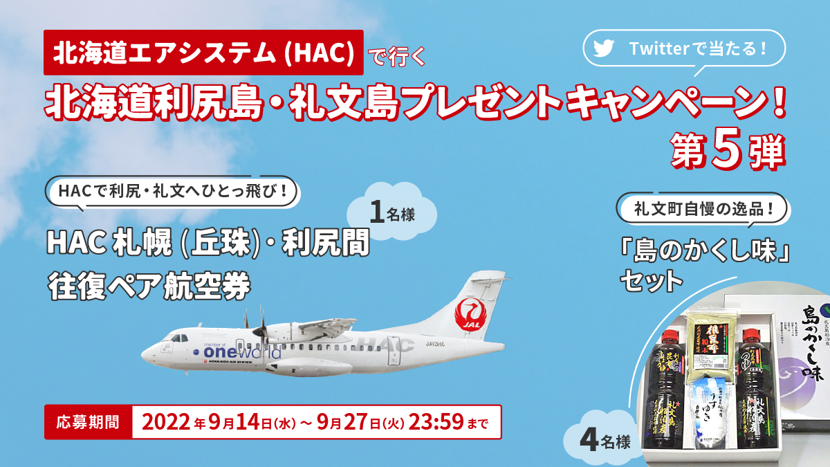 本キャンペーンはHACの札幌(丘珠)/利尻線増便を記念して、2022年6月15日(水)からスタート。日本最北の離島「利尻島」「礼文島」の魅力をより多くの方にお届けすべく、北海道の「今」を伝えるメディア『Domingo(ドミンゴ)』を通して現地の情報を発信するとともに、毎月・毎回必ず下記のプレゼントをご用意いたします。