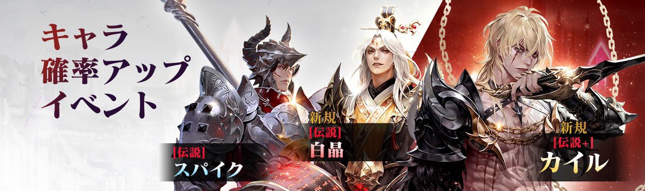 新規英雄の参戦を記念して、「復讐の鎖 カイル」や「絶望の策略家 白晶」などの出現確率がアップしているイベント召喚の登場に加え、成長段階に応じて「霊魂石」を報酬として獲得できる成長支援ミッションや、霊魂石をルビーで購入できるイベントを実施いたします。