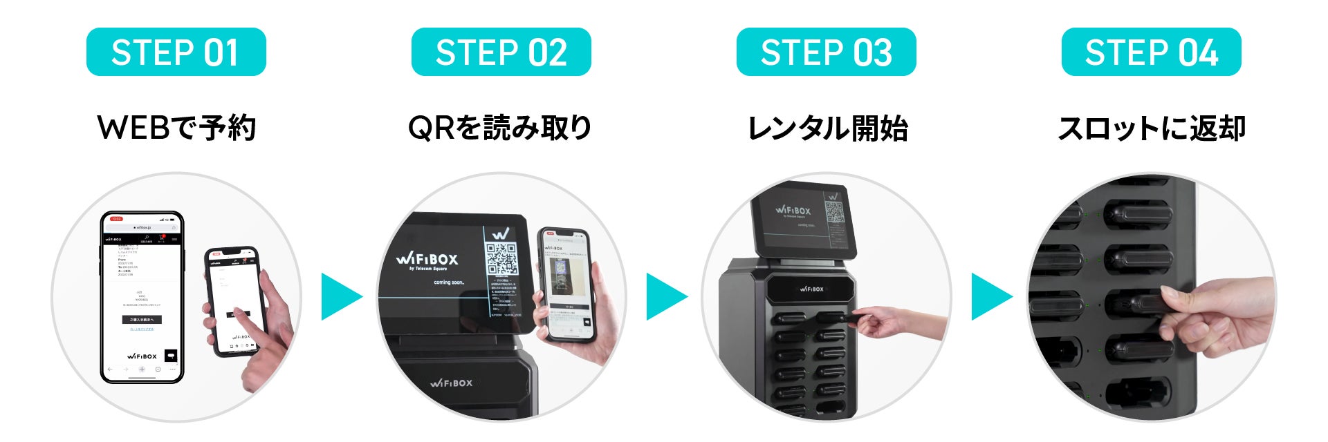 Web予約後、空港などのボックスからWi-Fiルーターを引き抜くだけで簡単にレンタルできます。出発前の空港カウンターに並ぶ必要はありません。