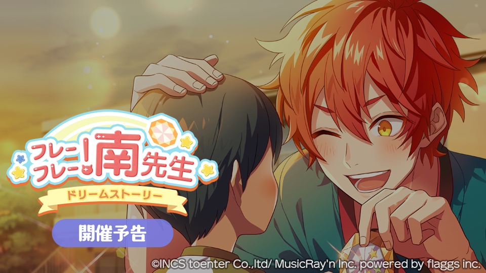 6月初旬のストーリーイベントでは、南が主役を務める「フレーフレー!南先生~ドリームストーリー~」を開催いたします。あわせて、南(CV:豊永利行)が歌う人気楽曲「映えラヴ」が新しく譜面に追加される他、イベントに関連したガチャやセールが行われる予定となっております。