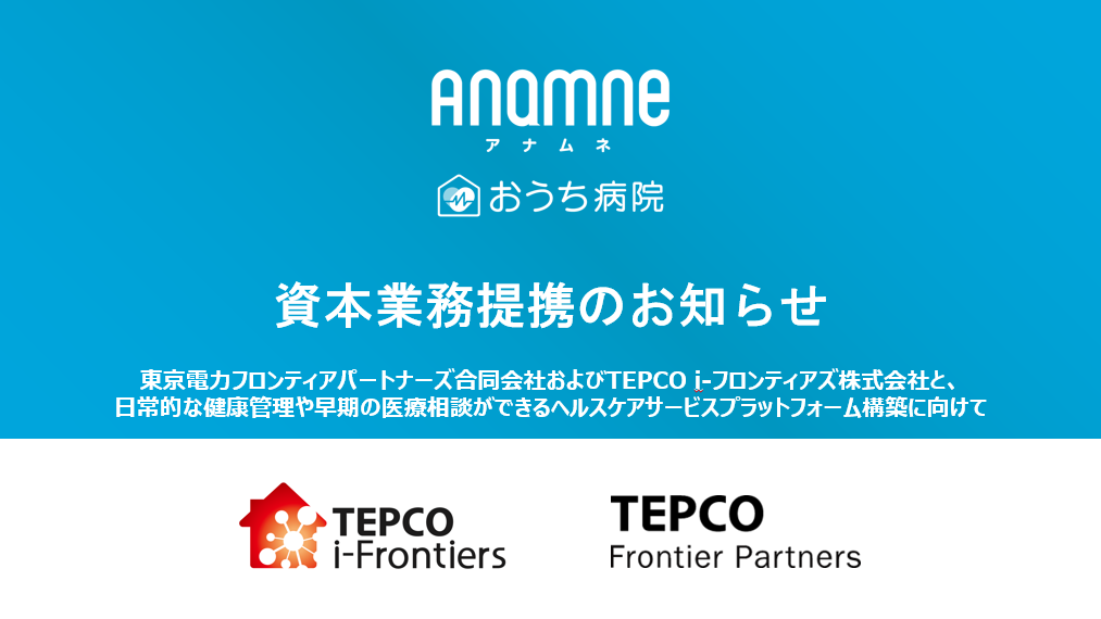 これまで、サービス運営をする中で、当社サービスが「自宅・職場・ホテル」など、室内にて利用されるケースが多いことが分かっており、今後の医療やヘルスケアサービスが自宅からアクセスするものになってくると予測しておりました。そのような中、今回、資本業務提携を実施するTEPCO i-フロンティアズは、東京電力グループが有する顧客基盤を活用し、お客さまの日々の暮らしに、安心、便利、快適を生み出す新しいサービスを創り出し、提供することを目指しており、目指している将来像が当社の描く世界と限りなくシンクロするものでした。今回の資本業務提携により、東京電力グループが有する顧客基盤と、アナムネが有する医師体制や医療・ヘルスケアに関する知見・システム開発力をかけあわせ、日常的な健康管理や早期の医療相談等が手軽にできるヘルスケアサービスプラットフォームを構築し、より多くの人々が、地域の中で安心して健康的に生活できる社会の実現に向けた価値提供を推進してまいります。
