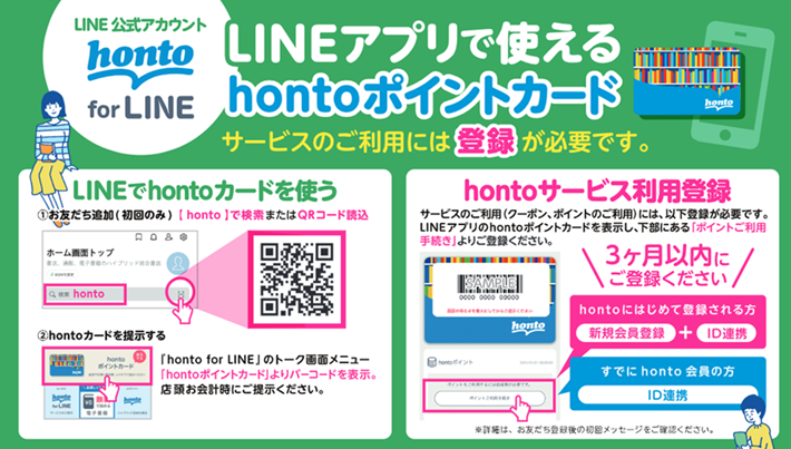 ※LINEマイカードは、hontoのLINE公式アカウント「honto for LINE」と友だち登録することでご利用いただけます。