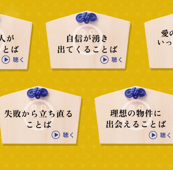 絵馬をタップすると、「自信が湧き出てくることば」や「失敗から立ち直ることば」、さらには「朝からスタートダッシュできることば」や「理想の物件に出会えることば」まで、アンミコが毎日を明るく過ごすためのポジティブな言葉を教えてくれます。