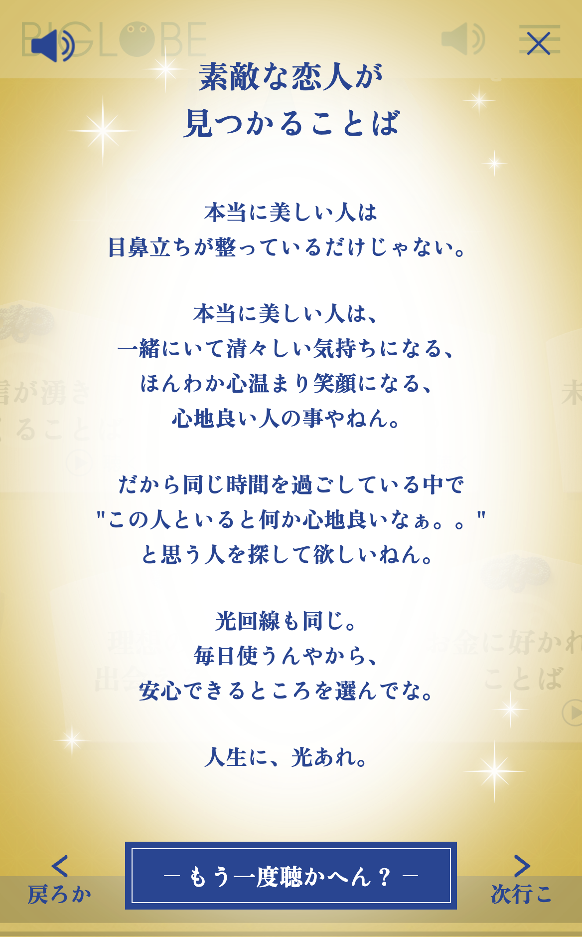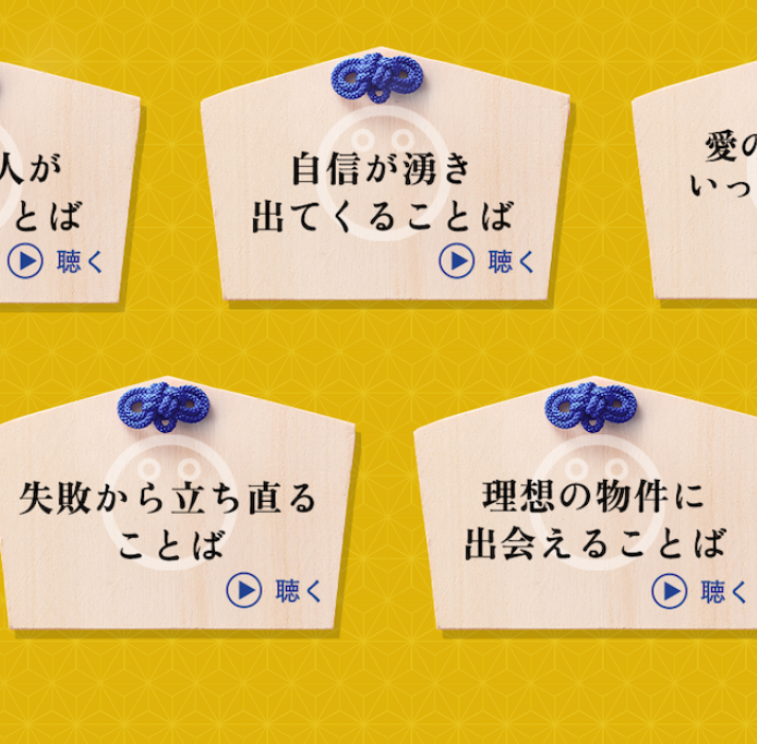 絵馬をタップすると、「自信が湧き出てくることば」や「失敗から立ち直ることば」、さらには「朝からスタートダッシュできることば」や「理想の物件に出会えることば」まで、アンミコが毎日を明るく過ごすためのポジティブな言葉を教えてくれます。