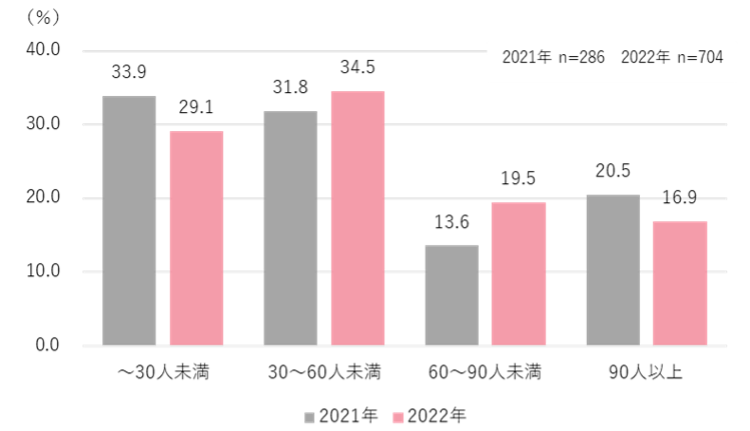 - 披露宴・ウエディングパーティへの招待人数は「60~90人未満」が前年比5.9pt増で増加傾向【図2】