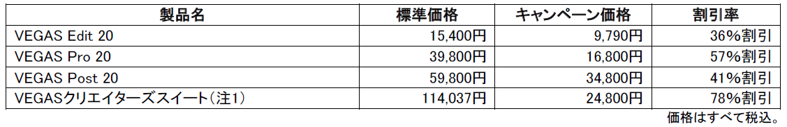 また発売を記念し、本日より9月28日(水)までの間、弊社サイトでは本シリーズを最大78%割引で提供するキャンペーン「The Chance VEGAS Pro」を実施いたします。