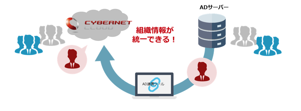 4.「Active Directory」連携:組織情報の自動更新により、人事異動や入社/退職時の設定変更にかかる管理工数を軽減