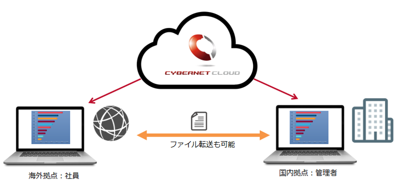 社内ネットワークに接続されているクライアントPCはもちろん、外出先からアクセスする端末や、海外の端末など、社内外に関わらず操作できます。本機能を活用することで、これまでメールや電話会議などで行っていたシステムサポート業務の効率化や、工数/負荷の軽減が期待できます。