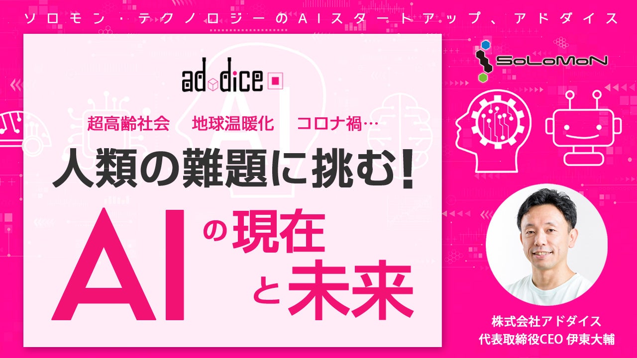 独自のAI技術「SoLoMoN® テクノロジー(特許6302954)」に立脚したAIソリューションで、社会課題の解決に挑戦するスタートアップです。