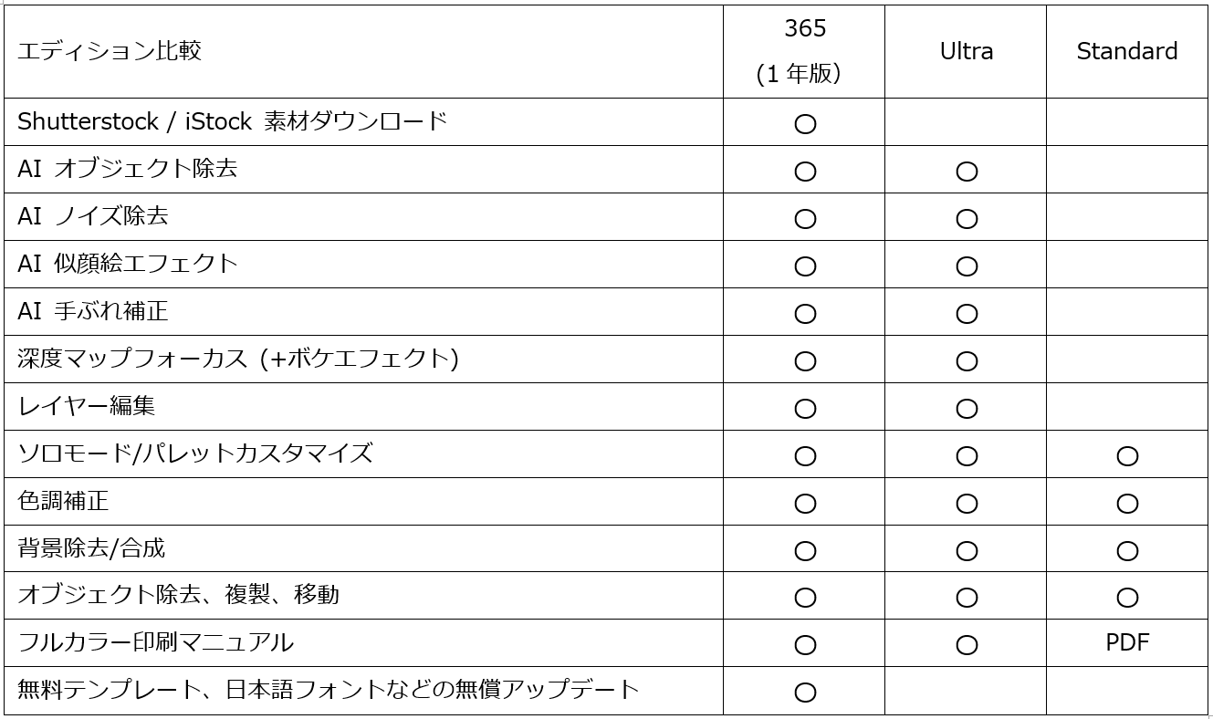 | New!! AI オブジェクト除去 *365、Ultra限定 |