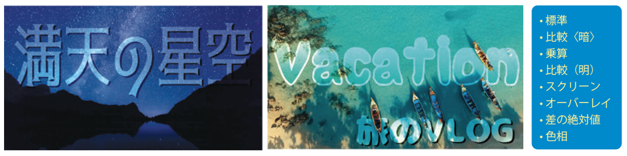 8種類のブレンドモードから選択して、タイトルを際立たせるエフェクトを適用。