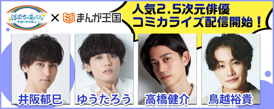 「ぼくたちのあそびば」はドラマや2.5次元舞台などで活躍中の高橋健介、鳥越裕貴、ゆうたろう、井阪郁巳の4人の俳優によるトークバラエティです。今回はその4人をモチーフとした人物が登場するオリジナルコミックをお届けいたします。