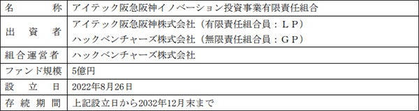 また、2005年7月に設立した現行のコーポレートベンチャーキャピタルファンド「アイテック阪急阪神戦略パートナーズ投資事業組合」を通じて、従前からベンチャー企業への出資を積極的に行ってきました(出資企業数14社。株式を売却した11社のうち3社が東京証券取引所において株式上場)。更に、これらの出資先であるAIやチャットボット、メール配信サービス等のIT関連ベンチャー企業との協業により、付加価値の高いソリューションの提供などを行ってきました。