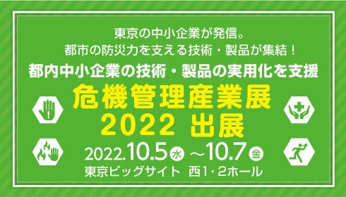 公益財団法人東京都中小企業振興公社は、10月5日(水)~7日(金)に東京ビッグサイトで開催される危機管理の総合トレードショー「危機管理産業展(RISCON TOKYO)2022」にパビリオンを出展します。