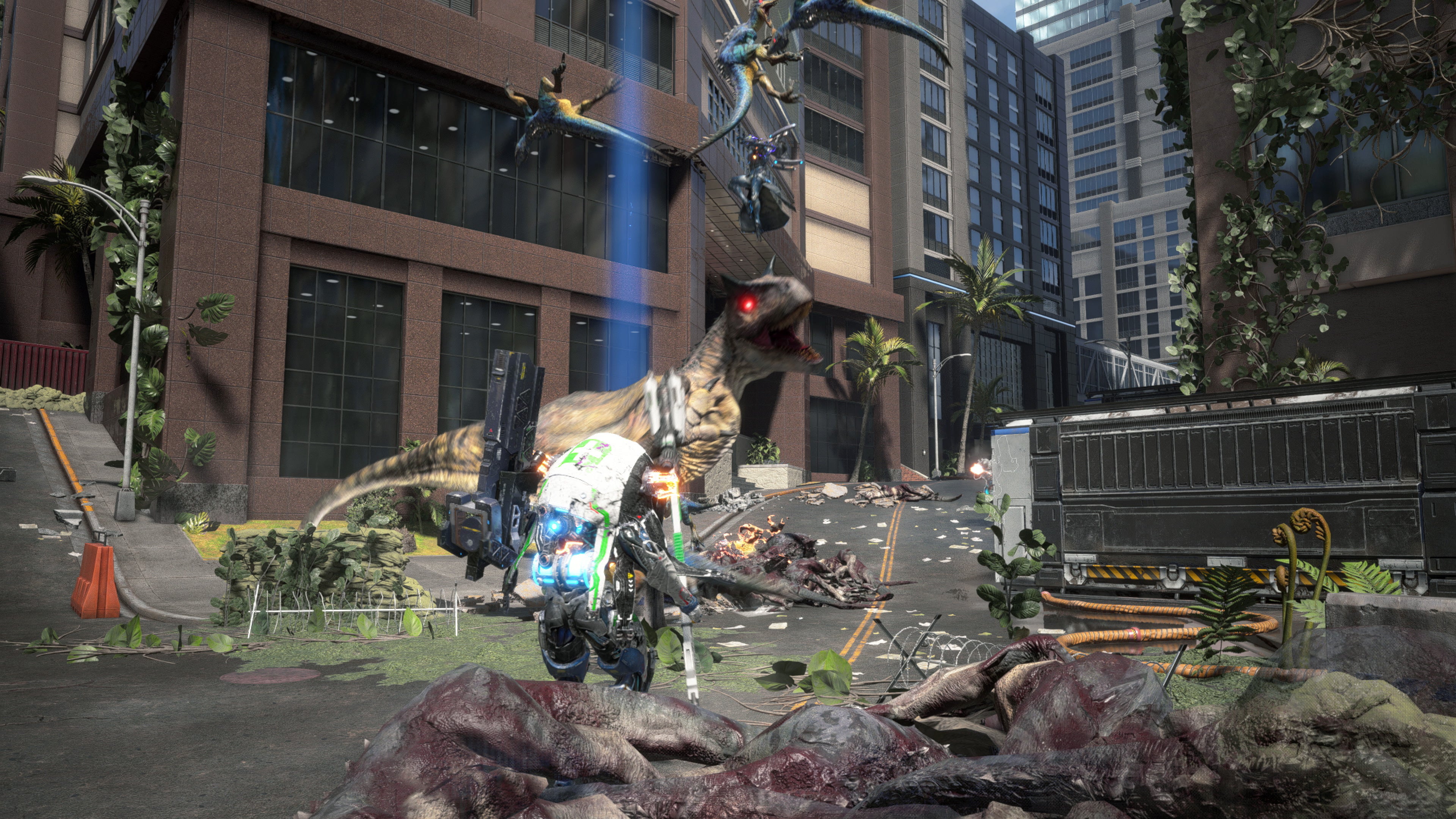 圧倒的な量で押し寄せてくる恐竜軍団や、強力な戦闘能力で襲い来る大型恐竜など登場。他にも体躯や能力が異常化した、恐竜の変異体「ネオソー」は、通常の個体とは異なる行動や攻撃方法を持つ。
