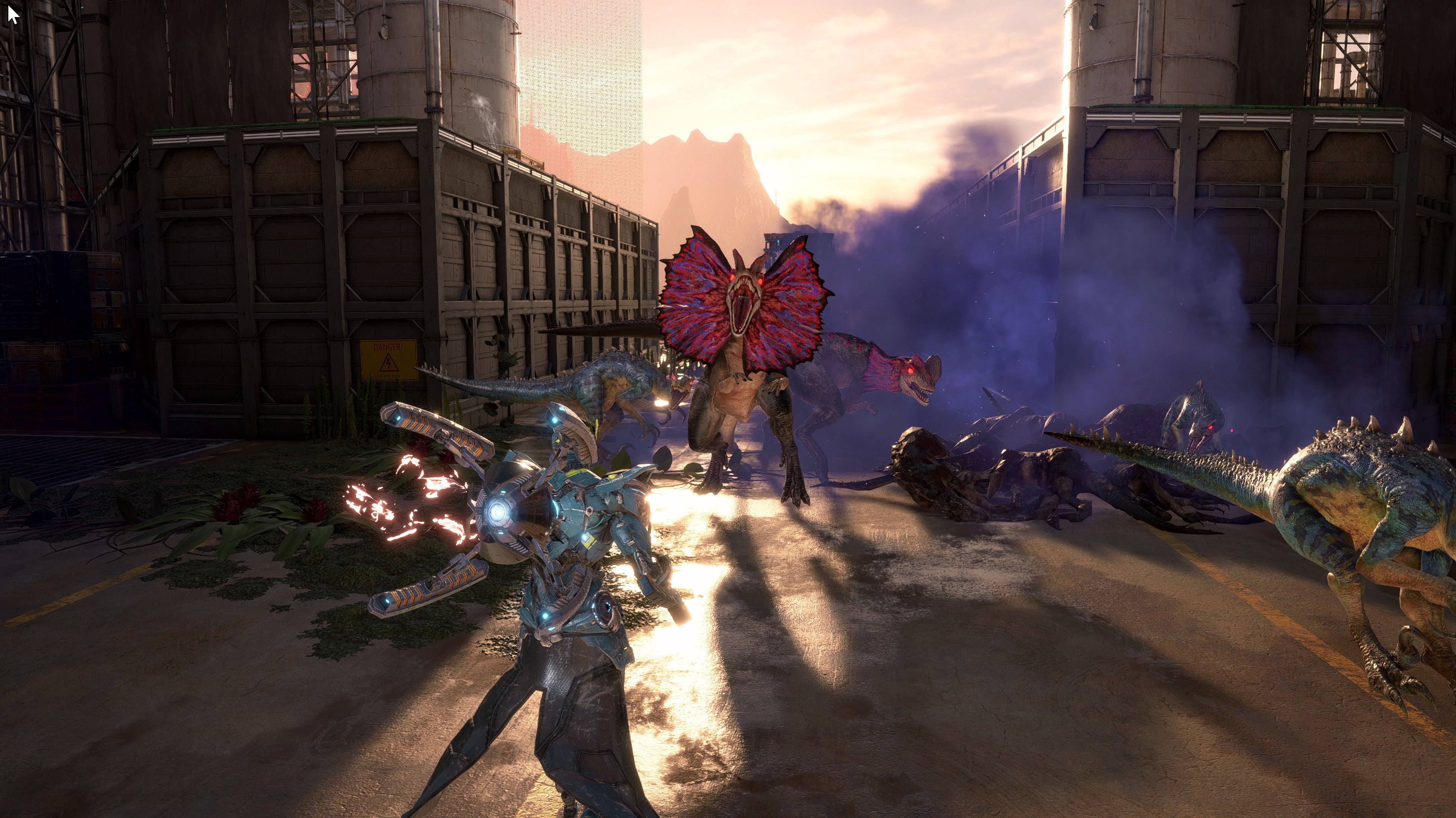 本作は、「ロール」という役割に特化した最新鋭パワードスーツ「エグゾスーツ」を纏い、圧倒的な量で押し寄せる「恐竜災害」に立ち向かう、オンライン専用のチーム対戦型マッシヴアクション。