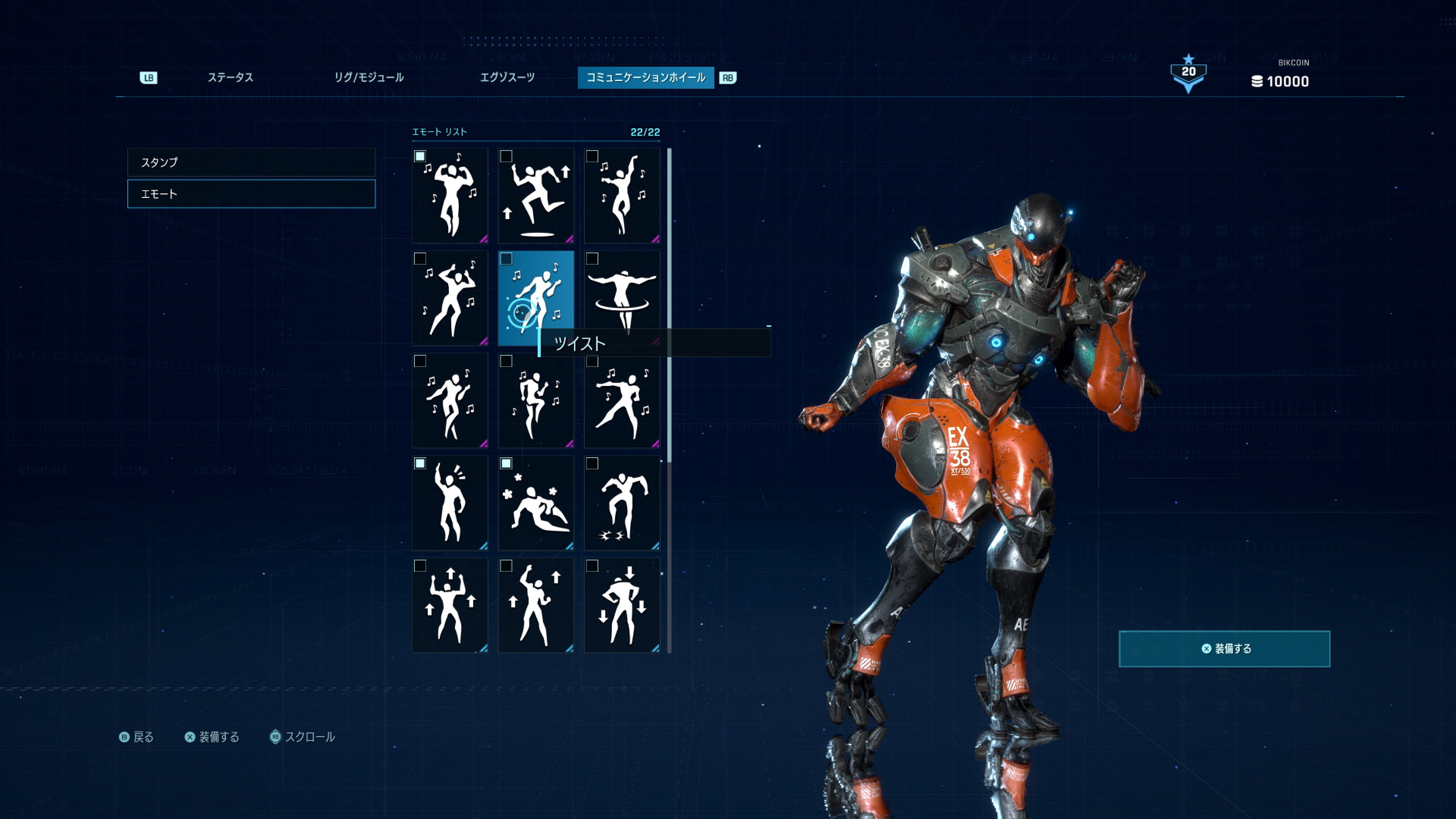 ゲーム中に使用したいエモートやスタンプを選んでコミュニケーションホイールにセットする。
