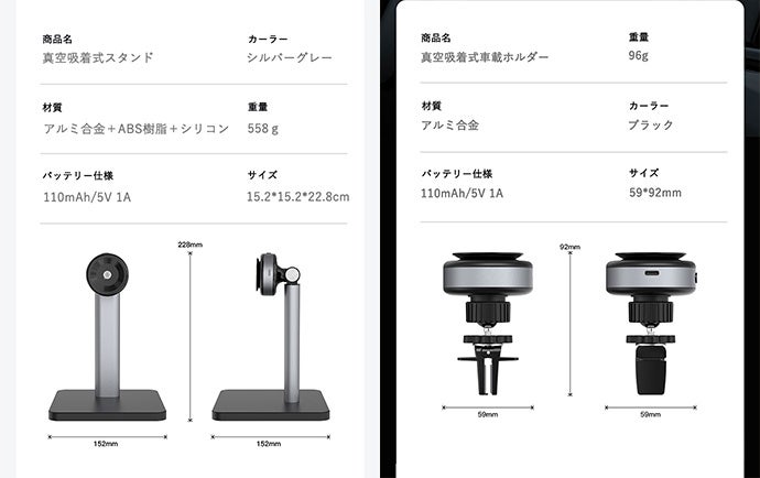 「真空吸着式スタンド&車載ホルダーVacuk」の特徴