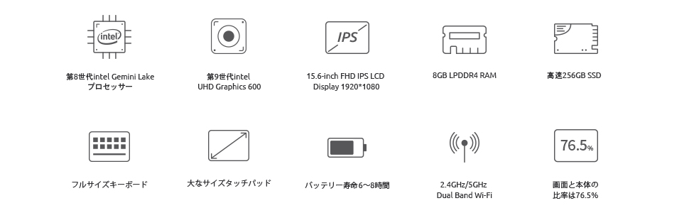 BMAX 「MaxBook X15」はインテル「Gemini Lake」プロセッサを搭載し、最大周波数は2.6GHzに至る、14nmプロセス技術を採用し、高速かつスムーズで、8GBの容量のLPDDR4実行メモリ、および256GBの高速ソリッドステートハードドライブを備えています。新卒・新社会人にとって、初心者向けのコスパいいノートパソコンです。