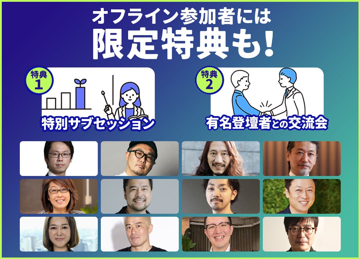 オフライン会場では一部の登壇者との交流会のほか少人数向けサブセッションを実施。より一層カンファレンスをお楽しみいただけます。