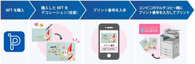 さらには、デジタルアセットとして流通しているNFTコンテンツを「リアル化」するプラットフォームとして「こんぷりん」をお使いいただけるよう、さまざまな取り組みを推進する計画です。生活に身近なコンビニでプリントできるという利点を生かし、NFTの普及促進に貢献してまいります。