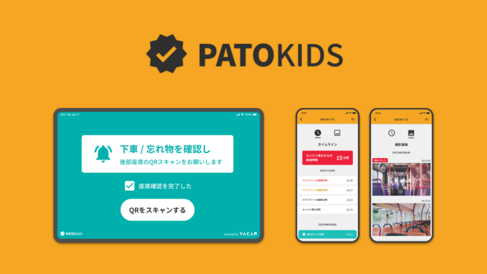 同様の事件を今後起こさないために、これまで飲食店やトイレ、投票所、観光地などあらゆる場所の満空状況を検知/配信してきた弊社の独自技術を活用し、バス置き去り防止支援サービス「VACAN PatoKids(β版)(以下、PatoKids)」(https://corp.vacan.com/column/patokids.html)を開発しました。