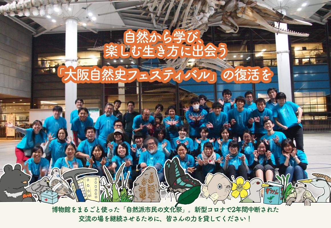 自然の価値、魅力を伝える「大阪自然史フェスティバル」の継続は、博物館に育てられた私たちの義務だと思っています。ご支援どうぞよろしくお願いいたします。